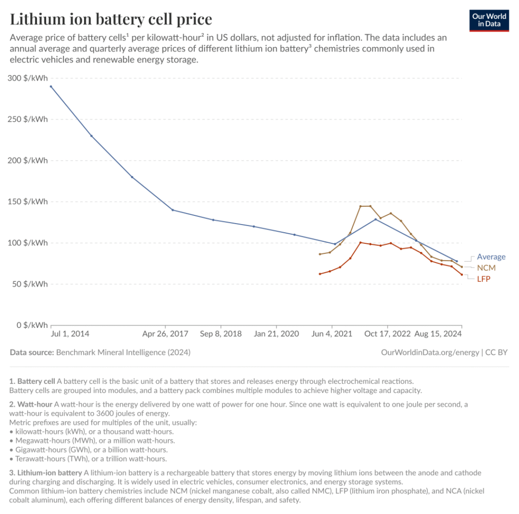 But in recent years, a new trend has emerged — more solar systems are being paired with battery storage. This shift accelerated after the global energy crisis of 2021–2022, when many European countries faced electricity shortages. As demand for batteries surged, large-scale manufacturing—especially in China—expanded dramatically. Thanks to economies of scale and a highly efficient supply chain, battery costs have since dropped to their lowest levels in history.